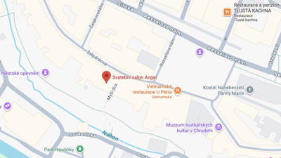 Svatební salon Angel najdete v centru Chrudimi. Nabízíme zkoušky svatebních i společenských šatů v klidném a osobním prostředí - vždy poctivě, s péčí a respektem k vašemu času i příběhu.